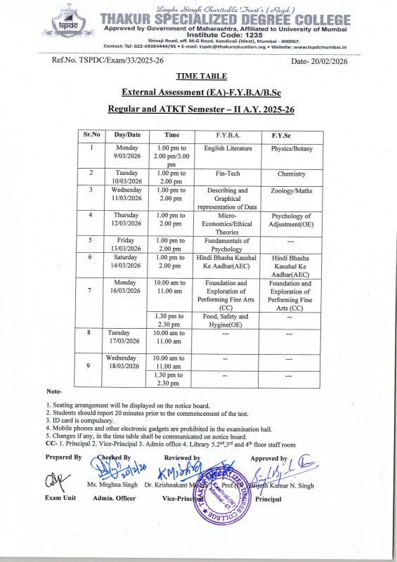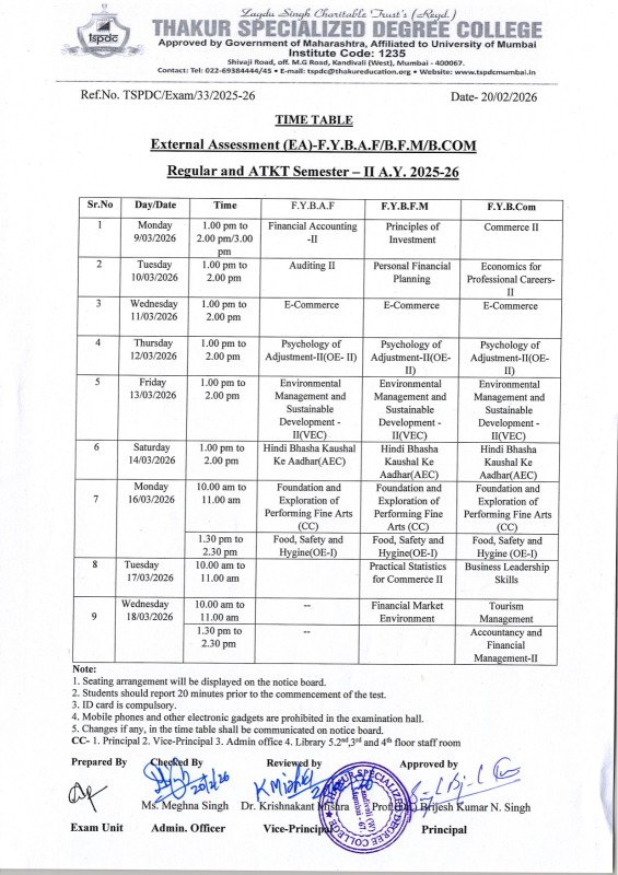- Time Table of Internal Assessment Semester – I & Semester II A.Y 2025-26 F.Y.B.Com, F.Y.B.Sc, F.Y.B.A.
