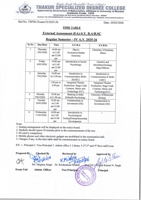 - Time Table of Internal Assessment Semester – IV A.Y 2024-25 S.Y.B.Com, S.Y.B.Sc, S.Y.B.A.
