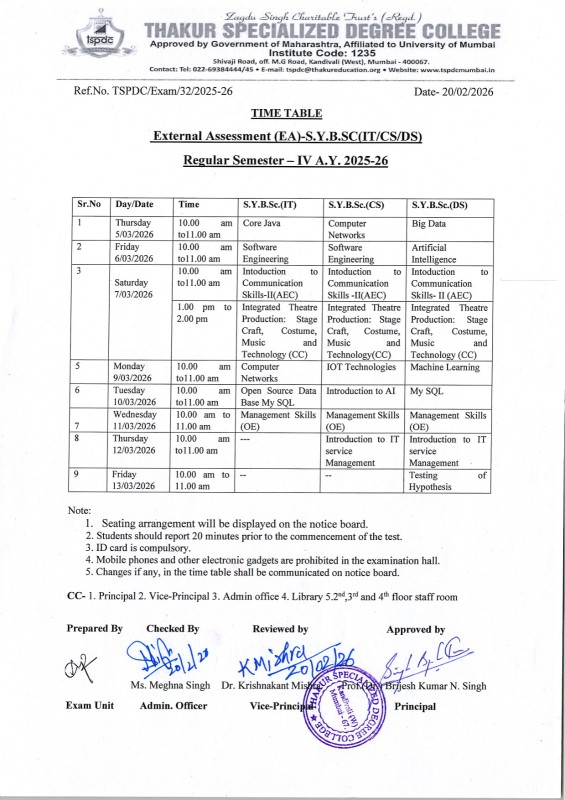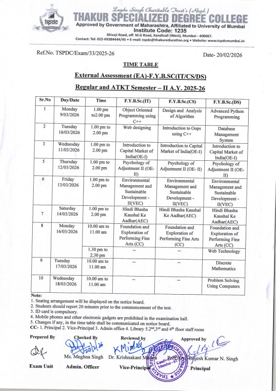 - Time Table of External Assessment F.Y.B.Sc IT-CS-DS Sem II A.Y 2024-25